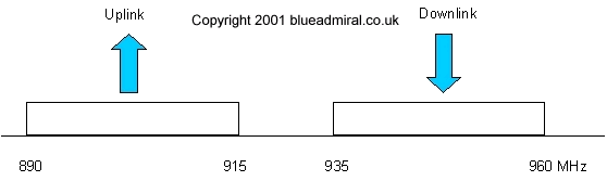 Figure 2 Uplink and Downlink frequencies for original GSM Spectrum |