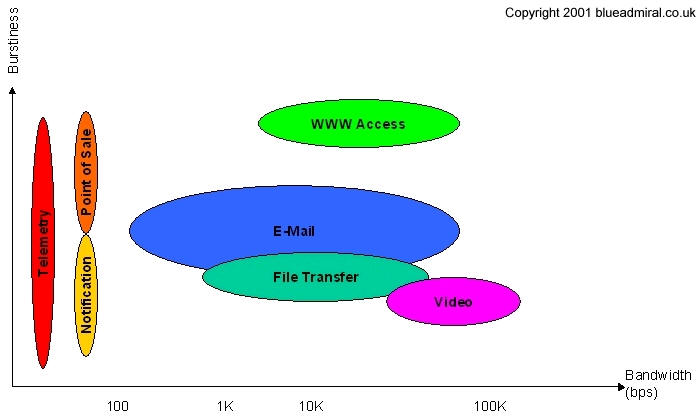communications. Burstiness and bandwidth requirements affect the type of