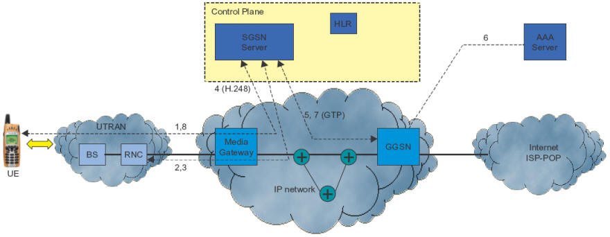 7 GGSN sends a “create PDP context response” back to the SGSN server